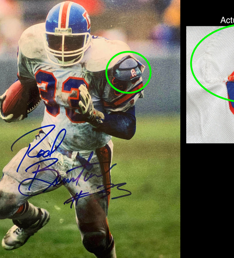 This jersey was worn by Rod Bernstine during the 1993 season. It shows great use with numerous team repairs and hit marks.